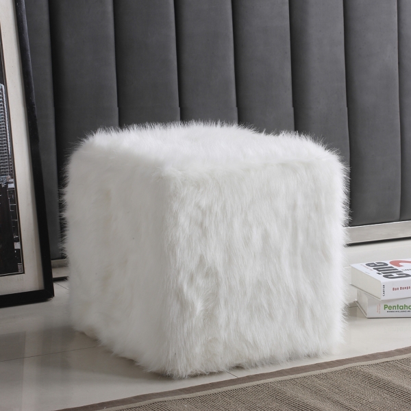 white faux fur ottoman